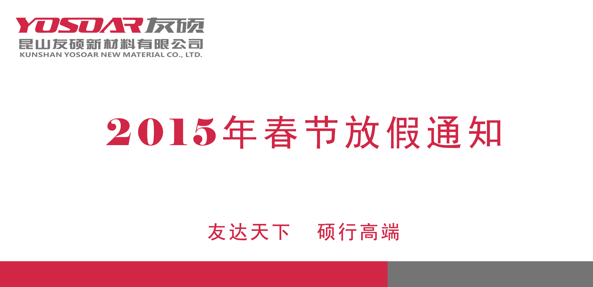 您們好!衷心的感謝大家在2014年給予我公司的鼎力支持與通力合作。在2015年春節(jié)即將來(lái)臨之際。昆山友碩全體員工恭祝大家新春愉快,羊年大吉。